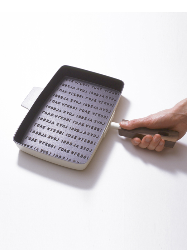 A prototype griddle pan for Alessi where the Alessi brand gets branded on to what is being cooked. NB this is a plastic model I made at the RCA and it looks exactly like cast iron. I'm quite proud of this model, Alessi didn't like the design.